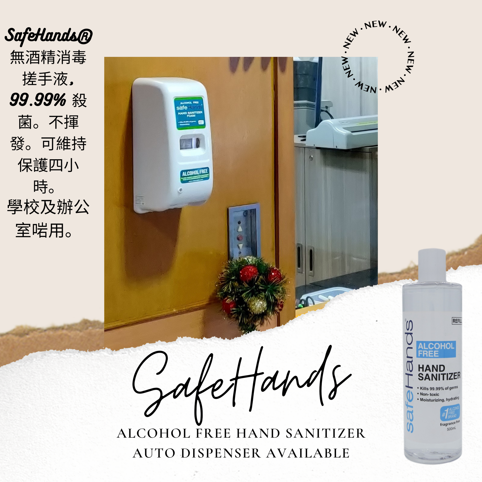 - 使用方法 : 使用safeHands 時,請採取WHO建議的正確洗手方案來塗抹手部,注意要塗抹手掌、手背、指甲周圍,而指尖部分可以使用打圈摩擦另一隻手的手心來完成塗抹。